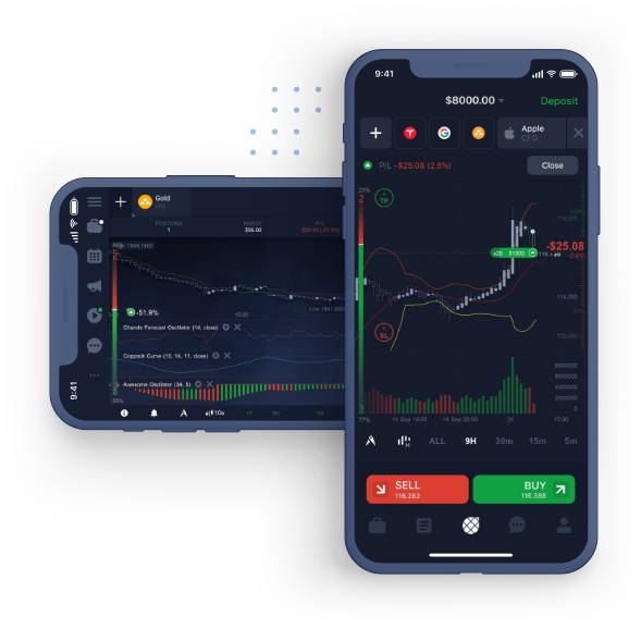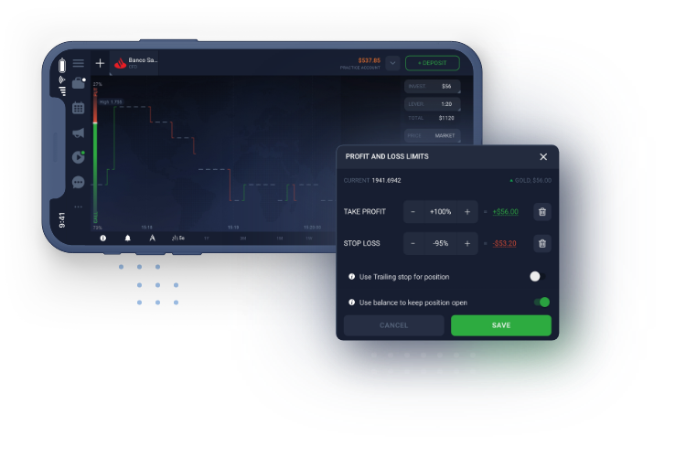 Trade from an option of 100 assets and cryptocurrencies. Base trades on technical analysis and the latest news.